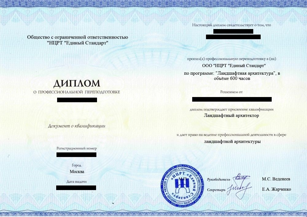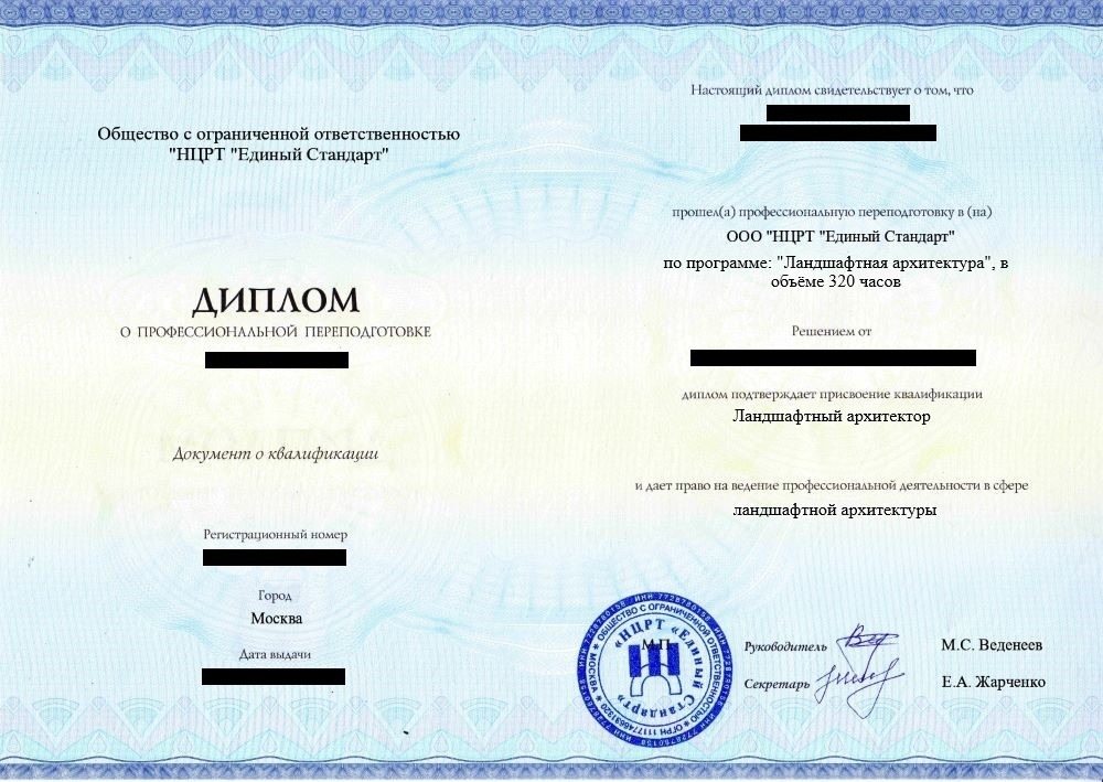 • «Ландшафтный архитектор» с правом осуществления профессиональной деятельности в сфере ландшафтной архитектуры